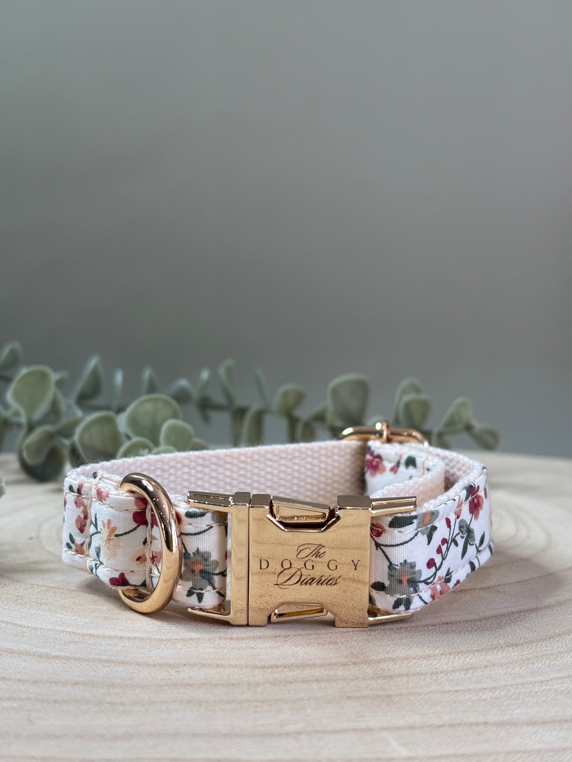 Spring Cream Floral fabric collar fabric with gold clasp.